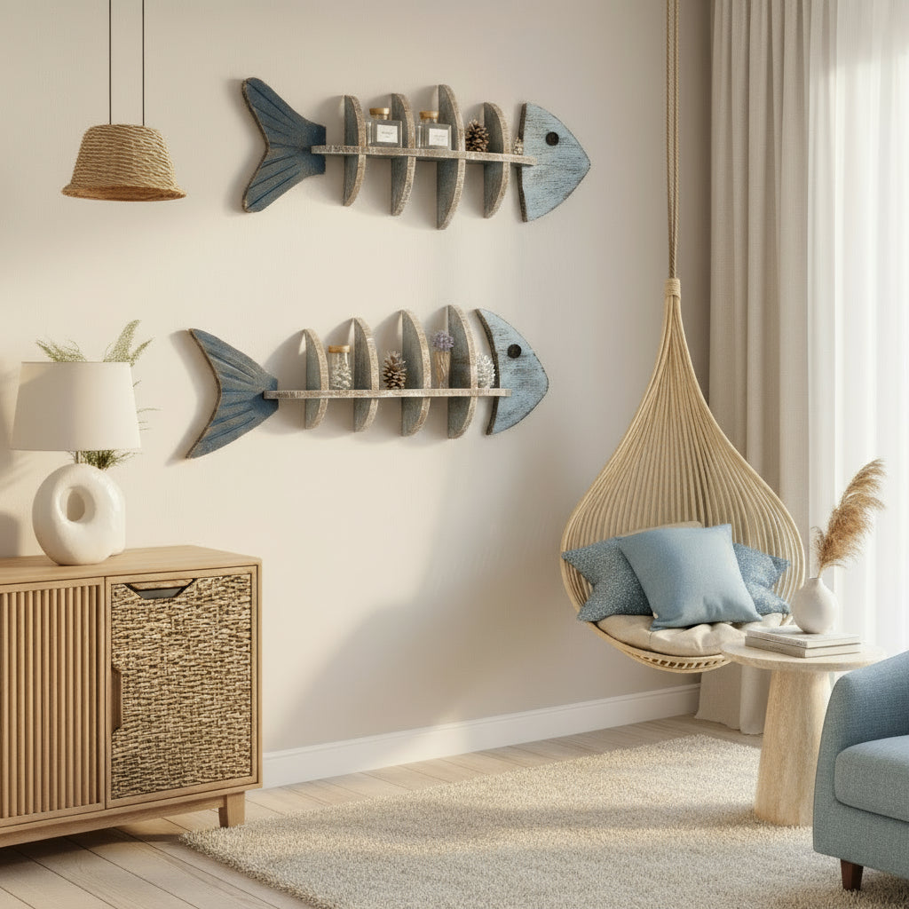 Bring a wave of calm, coastal charm into your home. The moment this handcrafted fish-shaped shelf meets your wall, your space transforms — simple, soulful, and filled with seaside warmth.